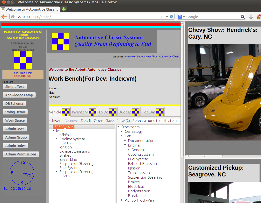 This is a presentation of the typical groups one might expect to manage for a regional classic car show competition. These groups are active for the demo.