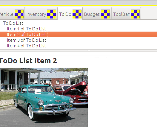 It is anticipated that the application will provide a to-do-list feature. The To-Do-List will be similar in behavior as the two panel "vehicle"
