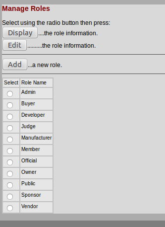 This is presentation of the typical roles one might expect to encounter for a regional classic car show competition. These roles are active for the demo.