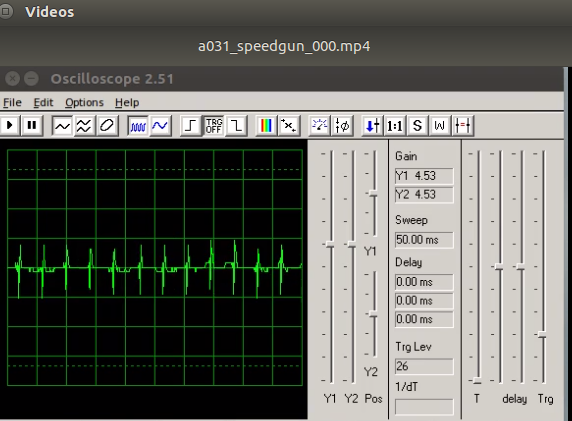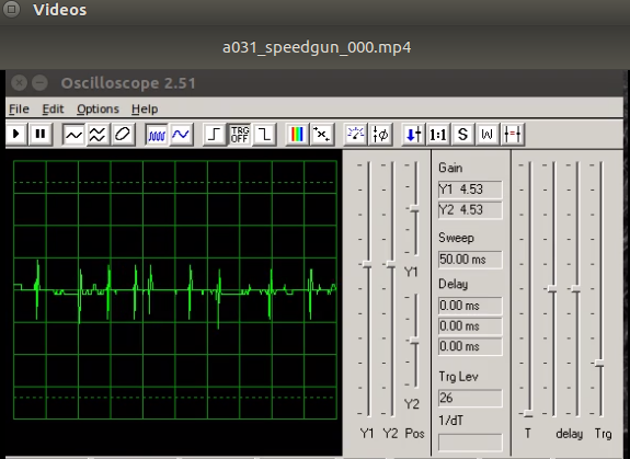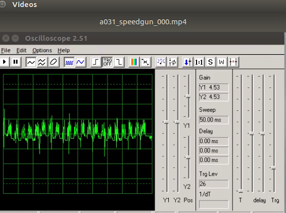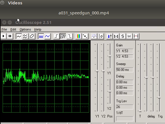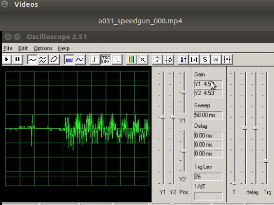 Before the Ultrasonic Speed Gun program is started and ambient, inherent state shoulw be reflected by the audio oscilloscope.