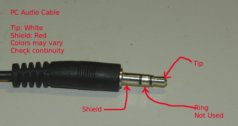 PC audio cable plug showing the TRS: Tip, Ring, and Shield.