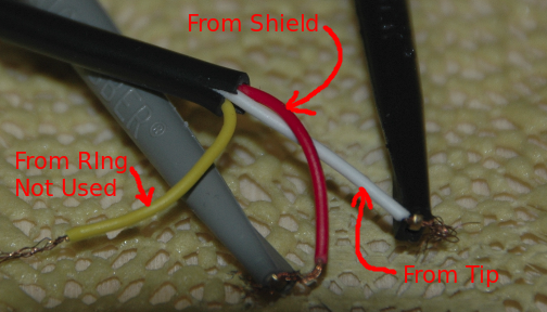 A better view of the wires extending from the TRS male jack.