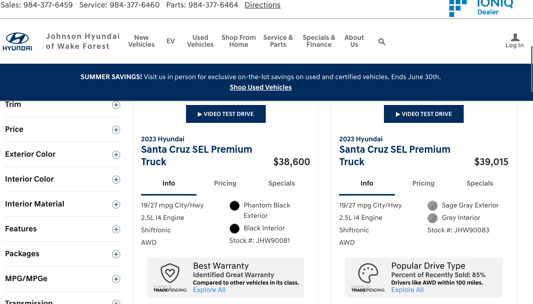 Note that the AWD Compart Pickup Trucks likely will be easier to schedule delivery