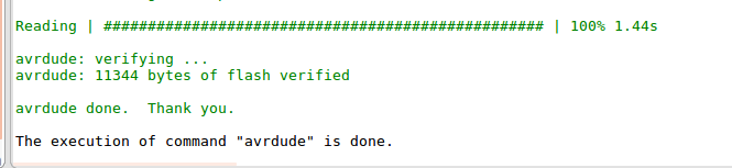 | Upload program to Arduino board | Given that the USB connection has been setup, a proper upload should result in a message that the avrdude is done. |