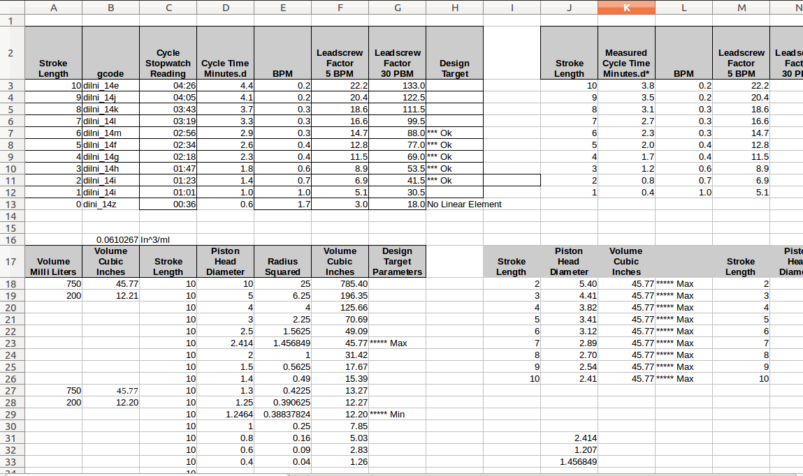 Early stepper motor testing as a CNC and number cunching drew concern to stepper speed, piston stroke length, and volume pushed/pulled by the psiton. |
