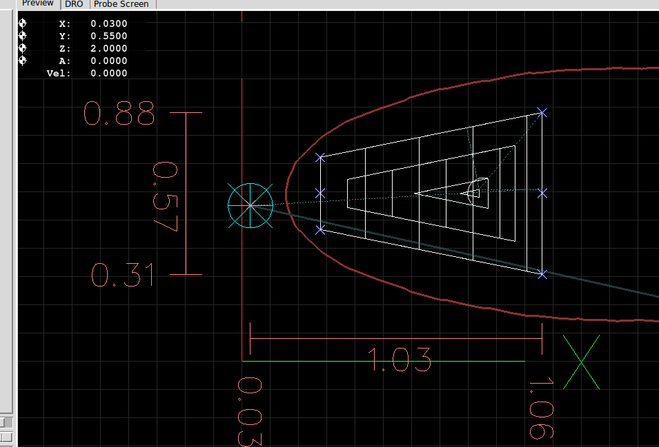 {SideB} Bore a shallow hole (1/4 End Mill) at the centerline locate at the desired point for the belly-hook wire.