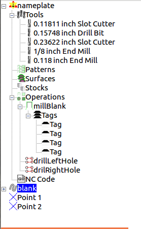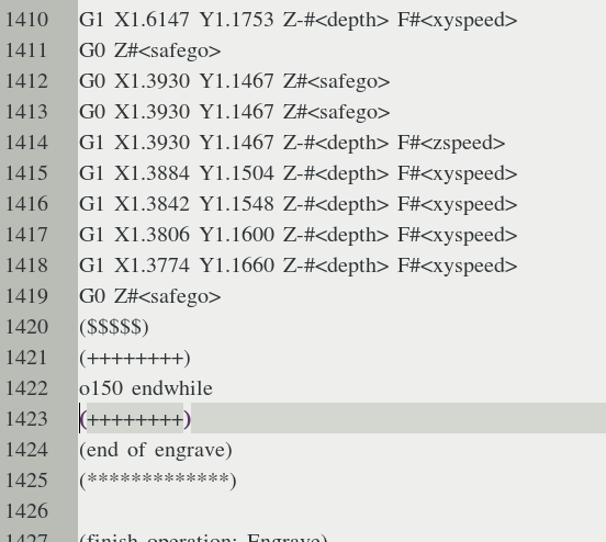 The gcode shown below is ordered in the sequence used to mill the project. Note that that engrave and blank milling employed