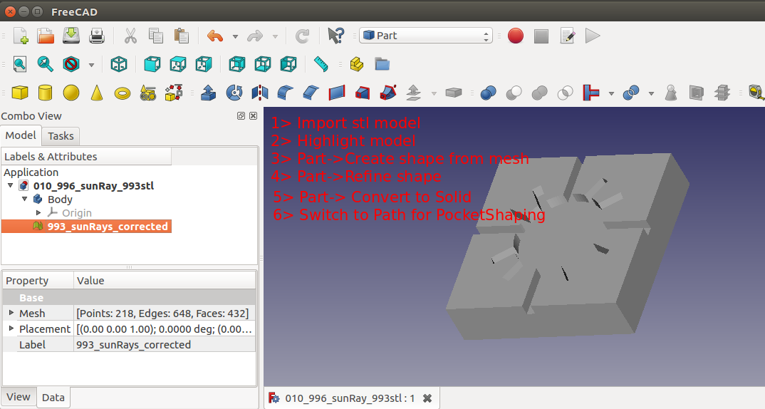 surface. Once the object was designed and rendered it was exported as a *.STL file. The file was imported into FreeCAD as a STL mesh