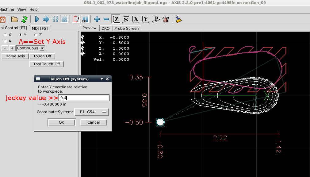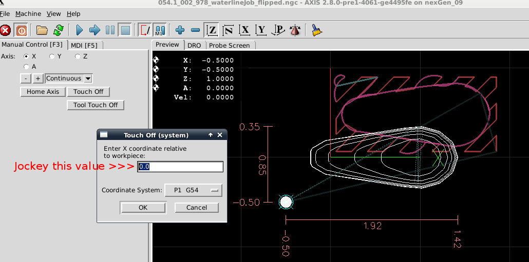 process for X/Y axis for P1 G54. When satisfied execute.