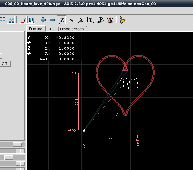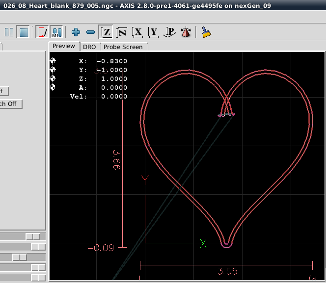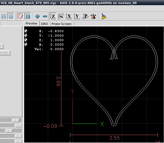 Milling Time: Open a LinuxCNC session. Load and execute the Heart Blank gcode. Once that