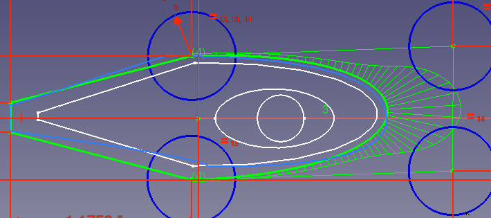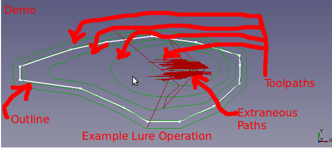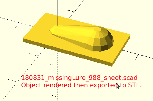 (OpenSCAD/HeeksCAD/CNC) Simple Fishing Lure: shape showing the space between the object and the walls of the pocket. The object