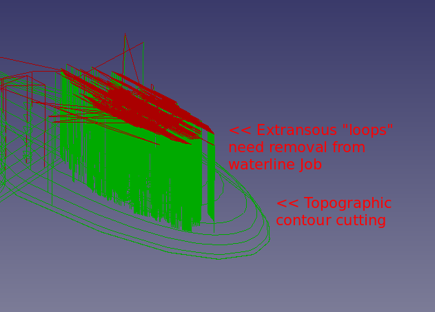 Refinement of the waterline by increasing the granularity of the contour lines (depth of cut from -0.025 to -0.010) did not provide a suitable quality to justify moving forward with this approach.