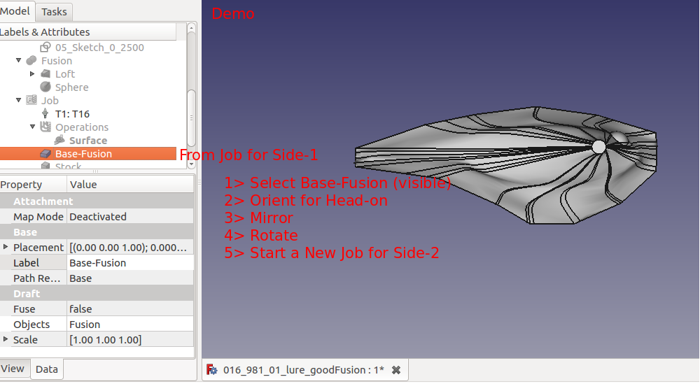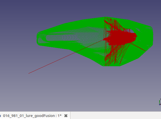 The same STL that was imported to the HeeksCNC lure project was reused. The