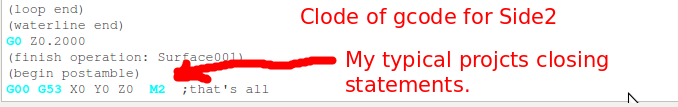 The gcode shown below is ordered in the sequence developed/used to mill the project. Note that that engrave and blank milling employed
