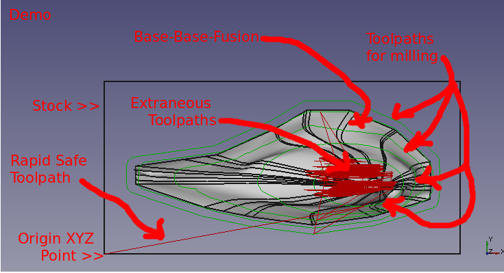 shape/solid and eventually into a set of waterline NGC code. Waterline refers to the milling pattern that follows
