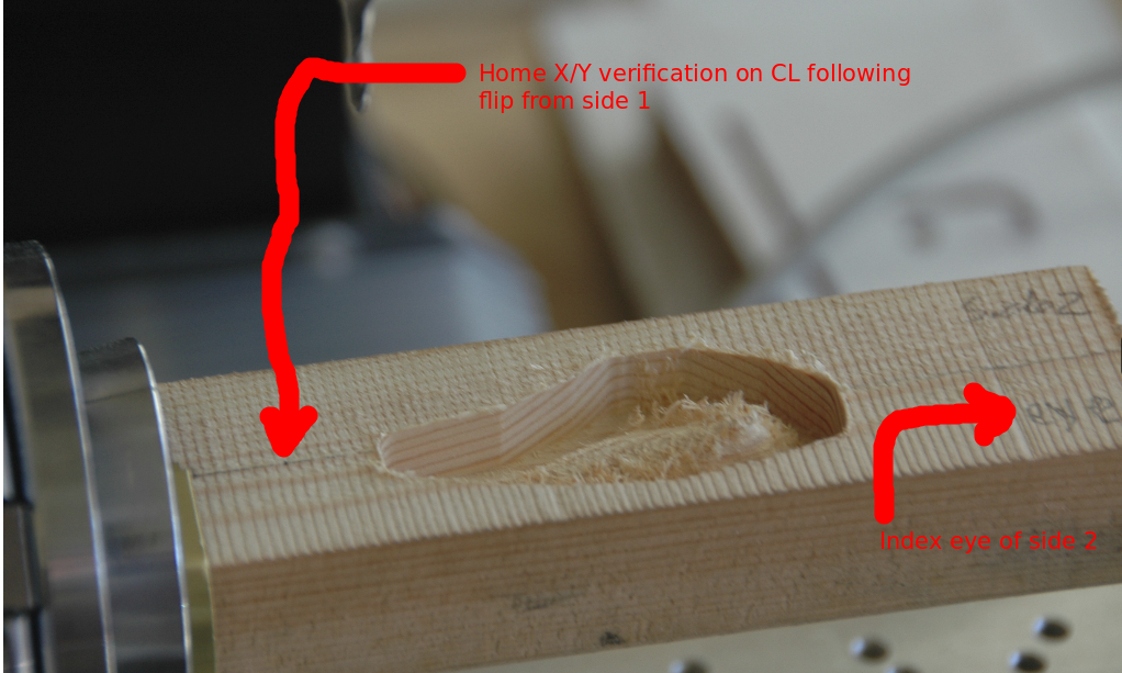 flipping and milling of side 2. This will require extending the registration points through the work piece