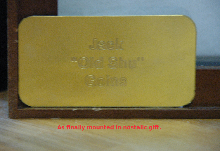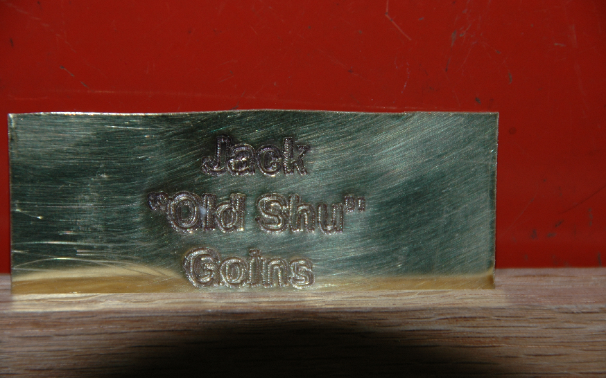 simple three line affair with two drill holes of brass tacks set on a thin oval brass blank. It was a very real learning experience