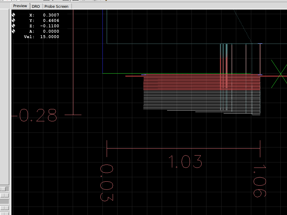 This image displays the LinuxCNC program driving the FreeCAD produced gcode on a Sherline