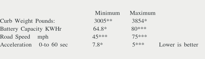 attempting to derive an estimate of how much electrical power the current electric vehicles, EV's, required to be market-ready. After actually test driving a