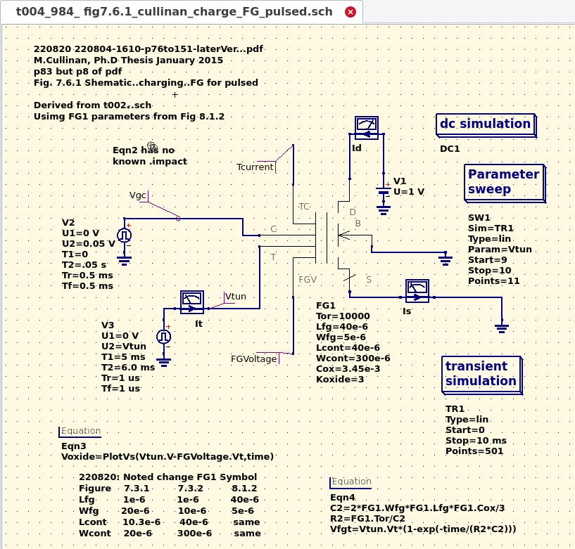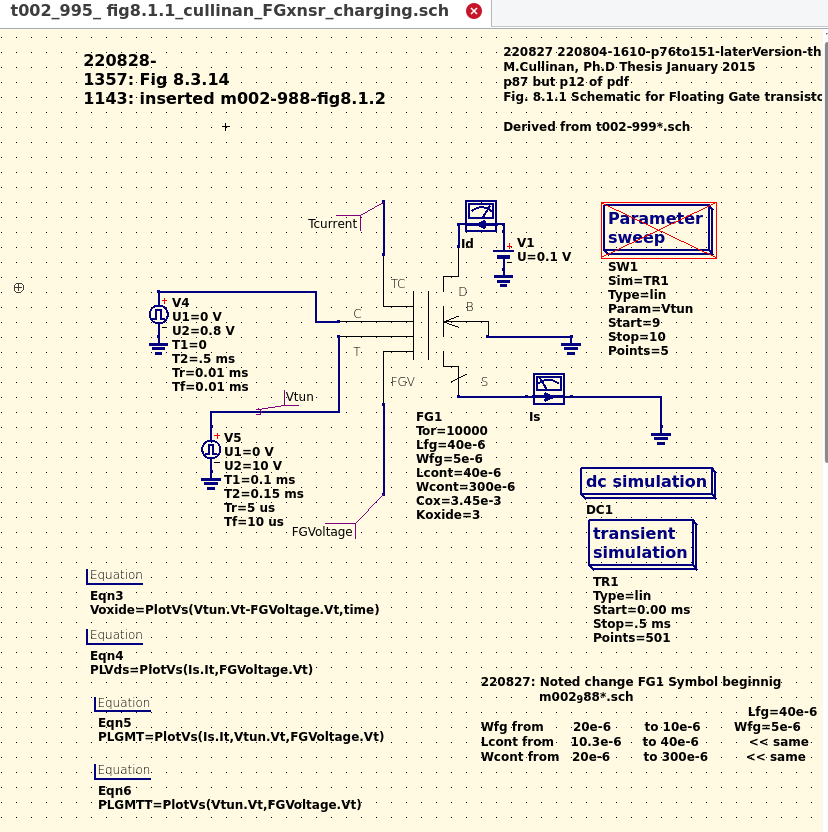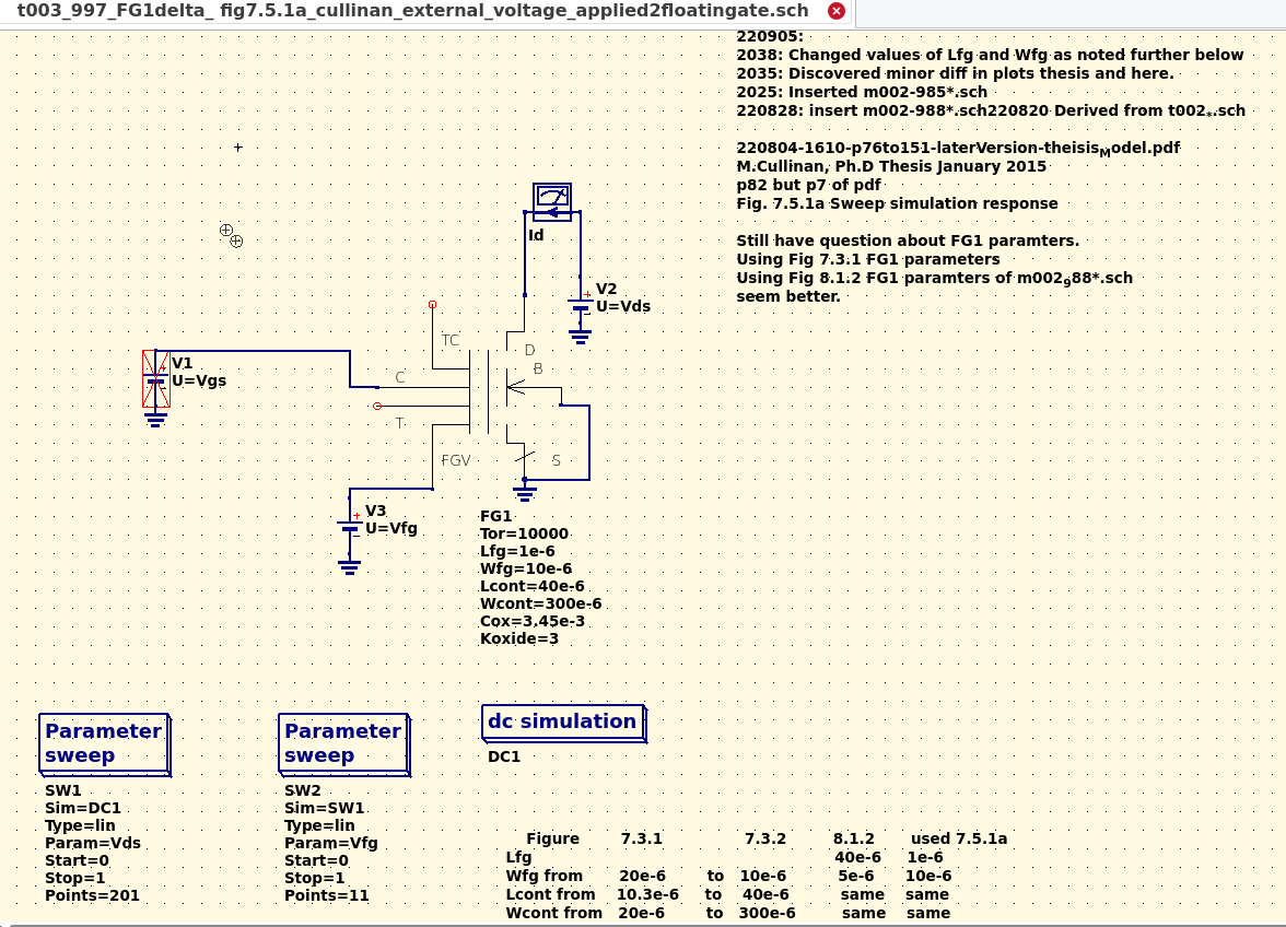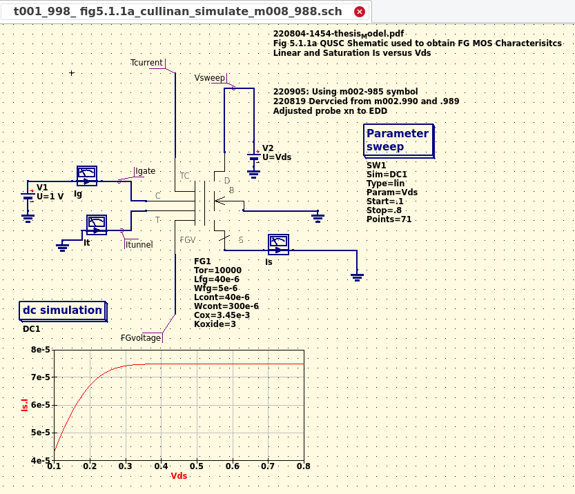 A study by C. Zhang and R. Hasan titled "A new floating-gate MOSFET model for analog circuit simulation and design." It essentially re-confirms M. Cullinan prior work product using non-OpenSource tooling. |