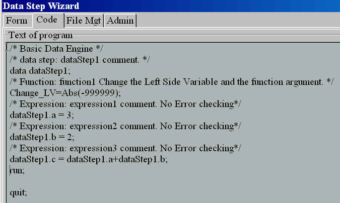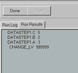 The Data Step Wizard interperter can beinvoked to execute the user's program. A separate log and results tab are available for presentation to the user.