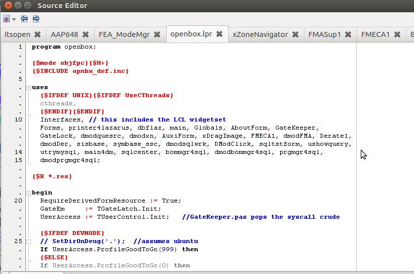 The migration to Free Pascal, the Lazarus IDE, and MySQL has been deferred until sufficient interest in the earlier project warrants more effort. The level of changes ranges from database to file navigation to compiler directives. Specific modules may be converted as demand increases. The benefit derived from this migration will allow the modules and eventually the entire Openbox applicaiton to run "anywhere", Windows, MacOS, Linix, etc.