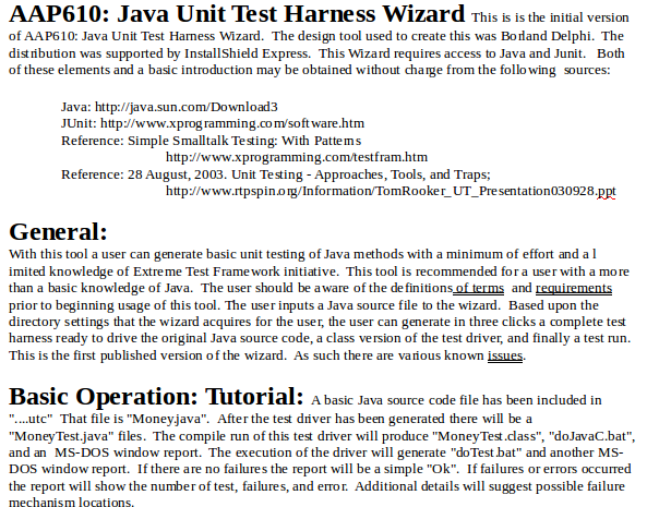 This project is a spin-off and enhancement of prior the Java IDE and CPP unit test manager projects. It operation is similar to the previously developed Framework. This project relies upon lex, yacc, and a Java syntax/grammar table to interpert the Java program source code. Momentum supporing this project has morphed to Lazarus and MySQL/LiteSQL versions. Refer to C++/C Unit Test Manager.