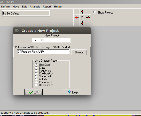 The current version of the Abbott Unified Modeling Langauge application presents a work surface upon which the user can assembles a uses case diagram. The diagram is assembled by pulling components from the pallette. The workspace or use case diagram can grow to the limits of the PC on which the applicaiton is running