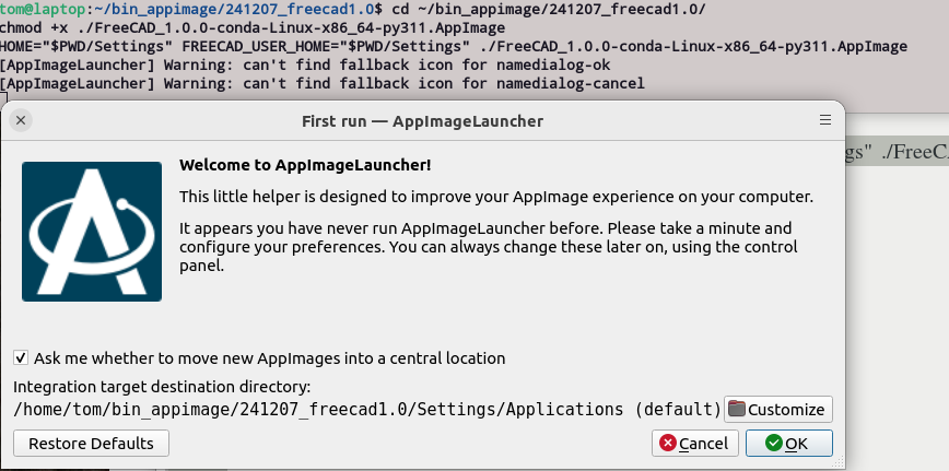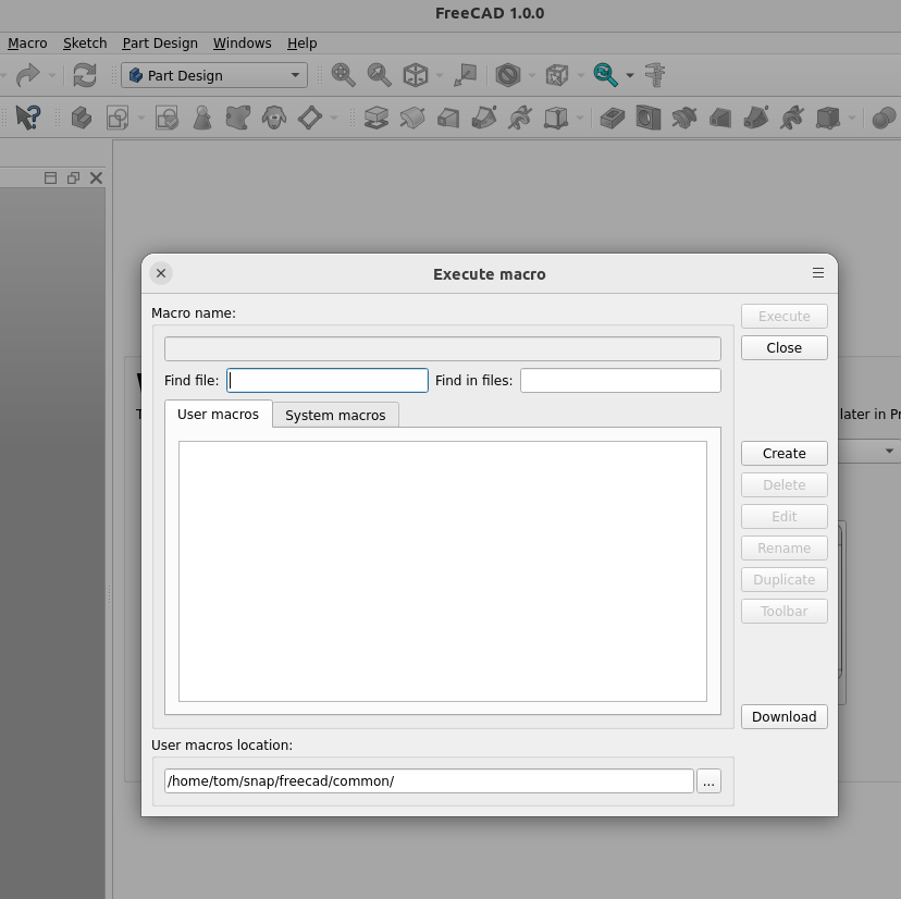 FC1.0.0 Snap Ubuntu Software Center ![]() FC1.0.0 direct from snap-store ![]() FC1.0.0 Default Preferences ![]() FreeCAD Workspace ![]() User's Macros ![]() Doomed ![]() TBD ![]() *************************** Click Here to view/copy script and desktop files for generating Desktop Launchers |