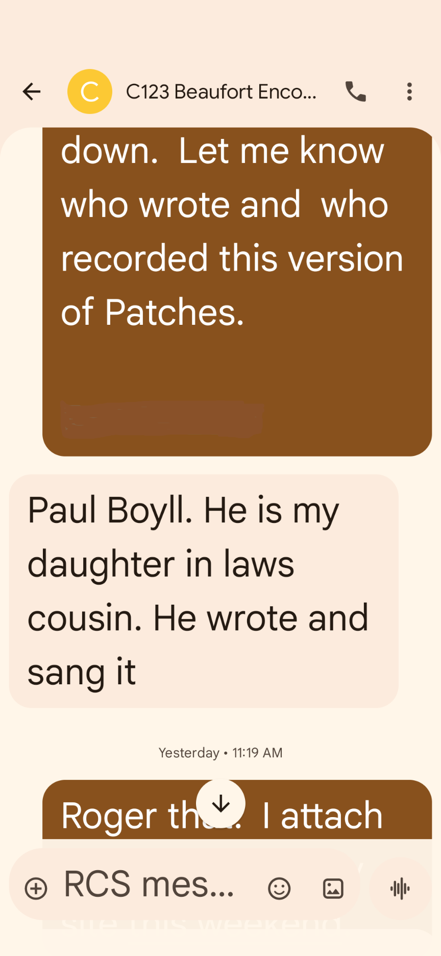 Patches the song by Paul Boyll