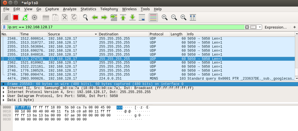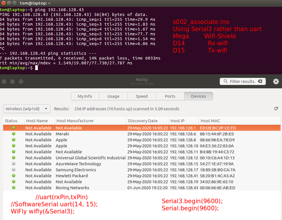 | sudo wireshark | Download and run WireShark to monitor WiFi-UDP communication in near real time.