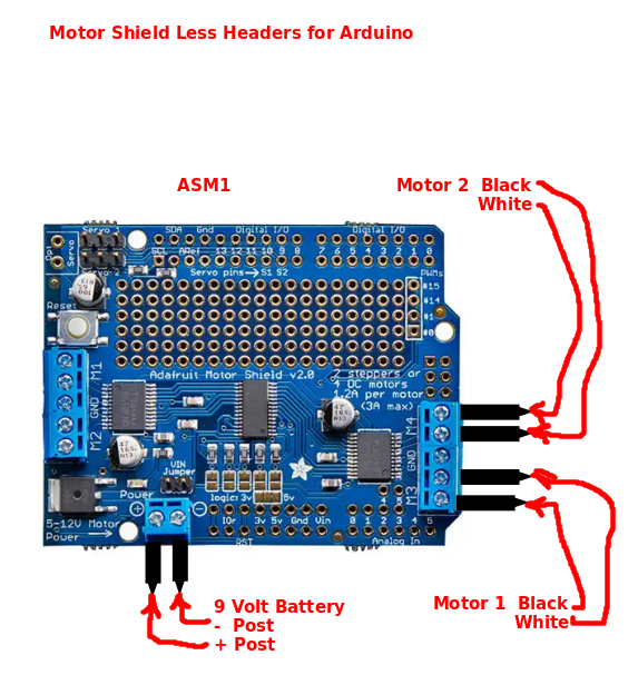 One Adafruit Motor Shields v2.3 is required to control the stepper motors. The shield provide two connection blocks that capable pf supporting a total fo four DC motors.