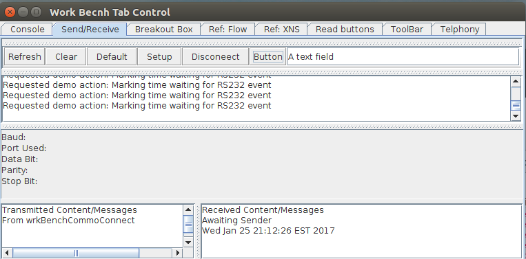 Communication Breakout BoxAn experimental RS232 breakout box has been create in software to faciliate creation of the interface between exercise equipment and a PC. The software design was executed in Java. Two following images depict the level of maturity in the project. To send an email to us regarding a comment or question, click here.